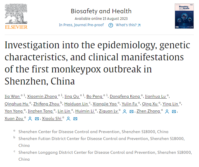今年6月,深圳市疾病預防控制中心(簡稱深圳疾控)基于華大智造病原微生物靶向測序產品組合完成深圳首例猴痘病例病毒溯源,相關文章被Biosafety and Health雜志接收并于8月發表。